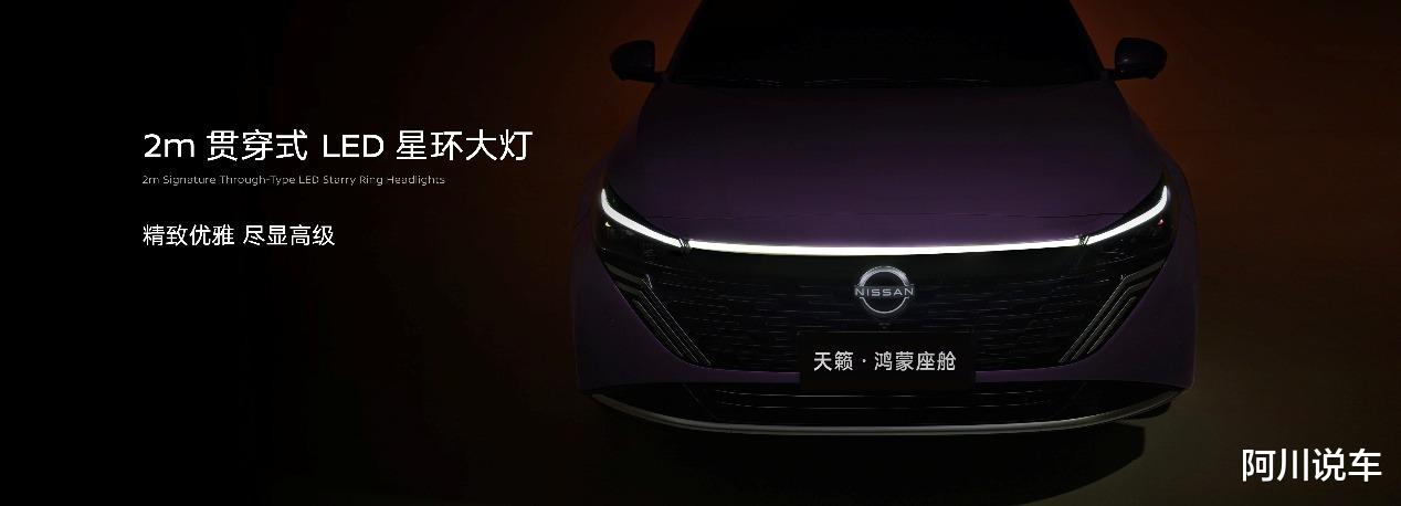 天籁·鸿蒙座舱以“流光智美”为设计理念,彻底跳出燃油车设计框架,车身姿态简约、高级、优雅。其2米长贯穿式LED星环大灯,呈现精致高级视觉;双子星LED前大灯,拥有同级第一230米超长照射距离,夜晚行车更安全。为满足用户多样化审美需求,天籁·鸿蒙座舱推出两款专属配色:羽砂灰,自信动感;幻影紫,优雅高贵。