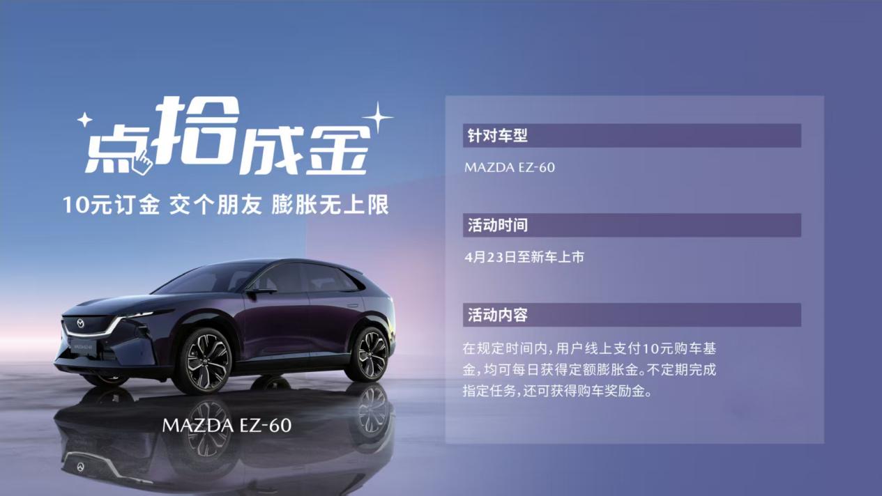 除了车展亮相之外,MAZDA EZ-60的预订政策也颇具吸引力。车展期间,10元订金即可享受新车交付时的膨胀金优惠。这一政策是对消费者的一种承诺,也进一步提升了市场对这款新车的期待。