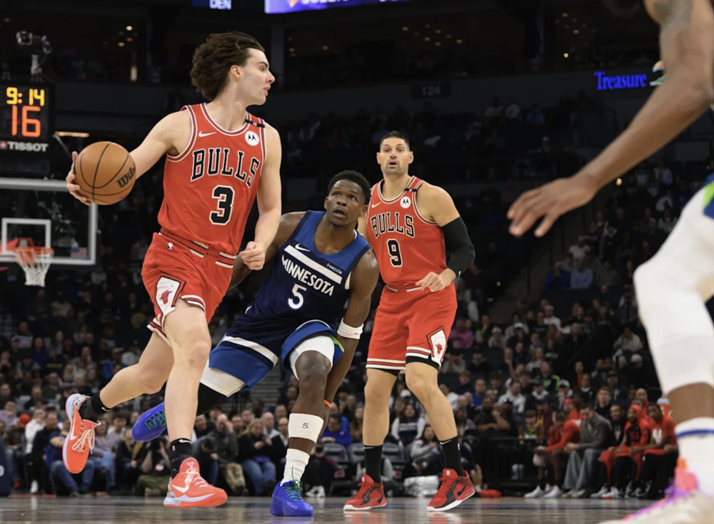 公牛上场比赛不敌雄鹿,球队多次抓住机会顽强追分,但是始终不敌字母哥关键时刻的强势冲筐。显然,公牛薄弱的内线并不擅长应对有着冲筐优势的队伍,而森林狼恰好是这样的队伍,爱德华兹的突破会给球队带来很大威胁。因此,公牛需要用更多轮换包夹他,不能让爱德华兹和队友之间形成轻松连线的机会。