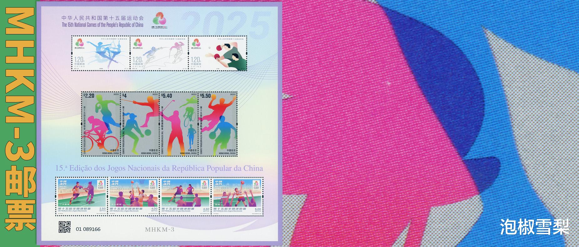 这次十五运会邮票虽然发行了高规格的三地小全张,但设计上实在让人难以喜欢,此处不单指中国邮政的三枚邮票,当三地的邮票放在一起时,不少人甚至觉得“2025-28”反而清爽好看了许多。