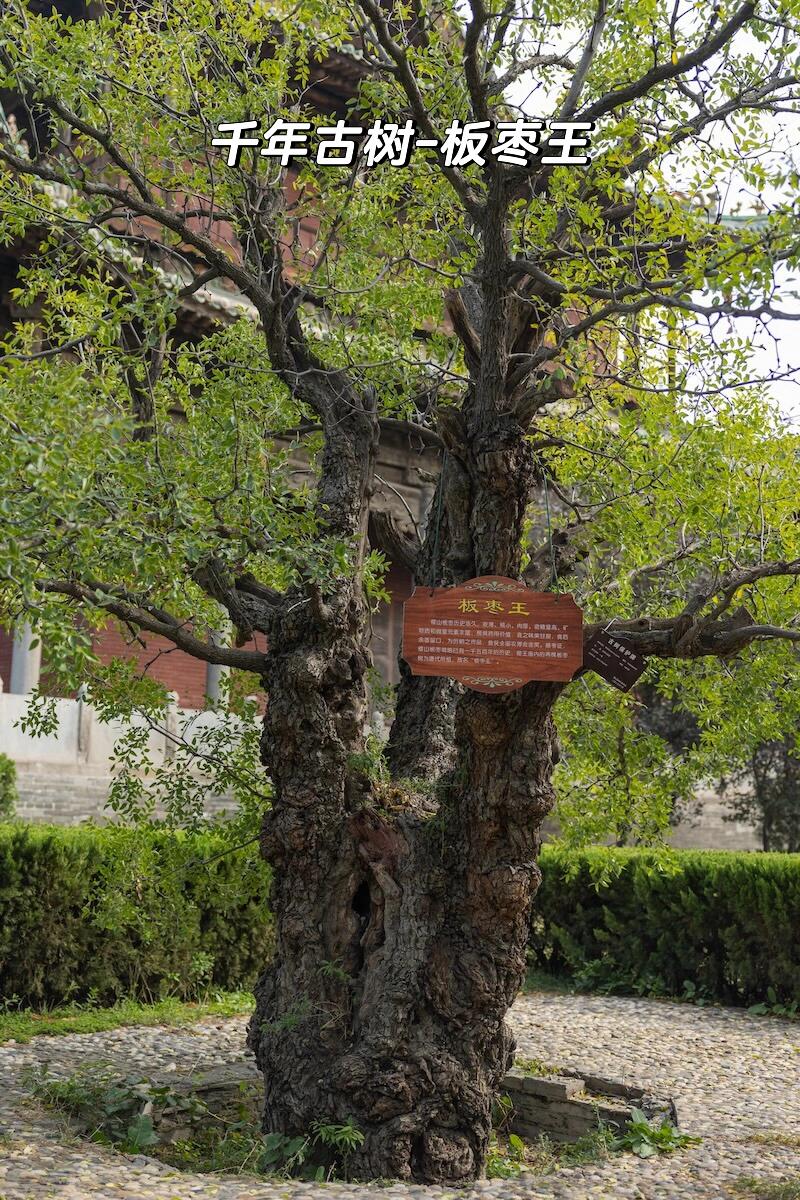 院子里的两棵板枣王是真的老了。树干得三个人合抱,树皮裂开深深的缝,像老人手上的皱纹。枝桠歪歪扭扭地伸向天空,却在顶端爆出浓密的绿,细碎的枣花藏在叶子里,闻着有股淡淡的甜。树底下的石碑写着“唐槐宋枣”,但 locals 都叫它们板枣王,说这两棵树结的枣子,肉厚核小,甜得能粘住牙。