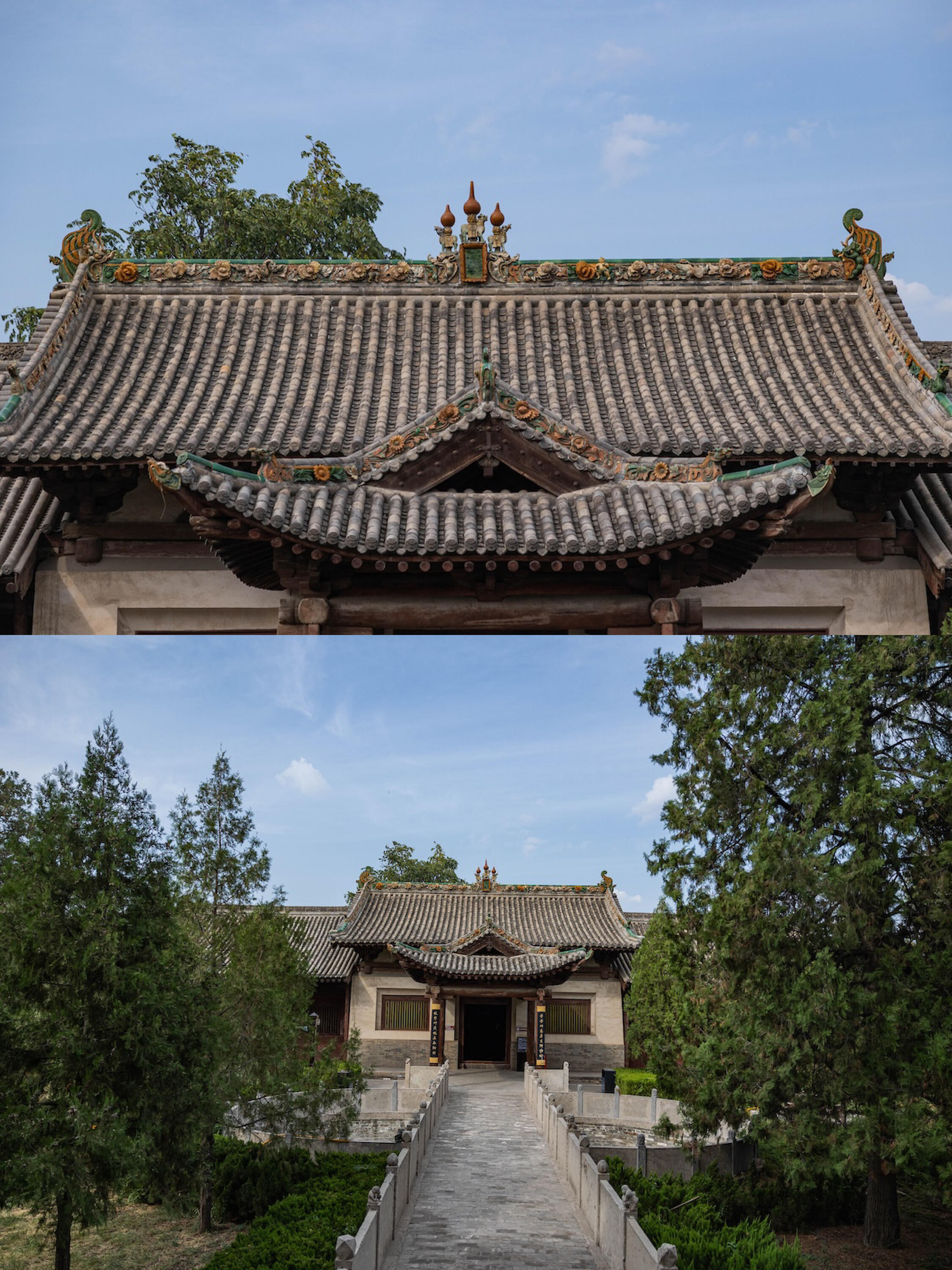 站在枣树下看庙,木雕的影子落在地上,随着太阳移动慢慢晃。突然觉得这些木头、石头、琉璃都活了——后稷教民稼穑的故事,就藏在献殿的耕牛里;姜嫄教子的温情,写在送饭姑娘的笑脸上;而那些不知名的石匠、木匠、窑工,把自己的手艺、生活、期盼,都刻进了纹路里,烧进了釉色中。