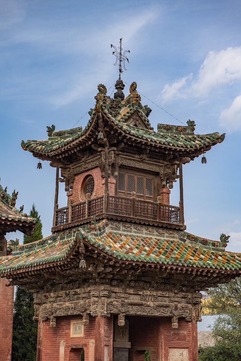 庙里头的琉璃件是另一种惊艳。屋脊上的鸱吻张着大嘴,釉色是正正经经的孔雀蓝,阳光下像浸在水里,边缘却泛着点紫。垂兽的肚子是明黄色,爪子扒着屋脊,指甲缝里的灰都被釉色盖住了,倒显得憨态可掬。听守庙的师傅说,这些琉璃是本地窑口烧的,用的是稷山特有的坩子土,烧出来的釉色不容易褪色,几百年风吹日晒,还是亮得扎眼。