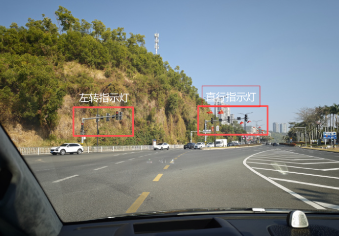 但是!中途有一个小意外:看图,在一个Y字形路口左转掉头,左转指示灯和直行指示灯是分开的,直行灯刚变绿,辅助驾驶就直接开出去了,并没有识别到还未变绿的左转灯,还好我立马介入了。这种路口非常复杂,似乎目前还没有哪辆车能识别吧?不过D2D的效率很高,值得使用。