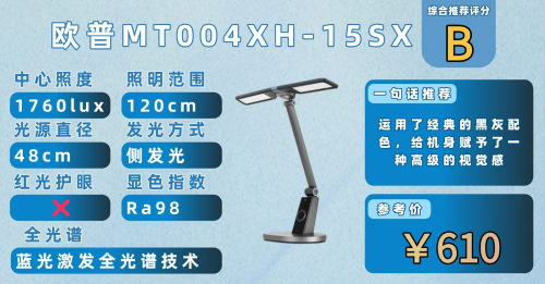央视推荐护眼灯第三名:欧普MT004XH-15SX(推荐指数:⭐⭐⭐⭐)