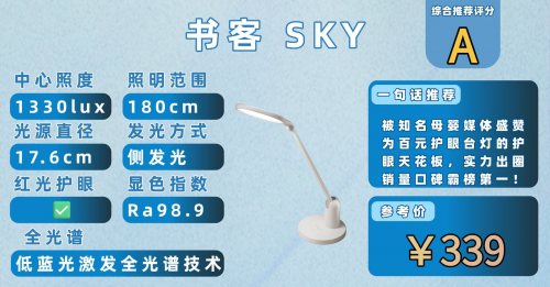 央视推荐护眼灯第六名:书客SKY(推荐指数:⭐⭐⭐⭐)