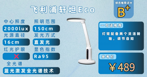 央视推荐护眼灯第八名:飞利浦轩坦Eco(推荐指数:⭐⭐⭐)
