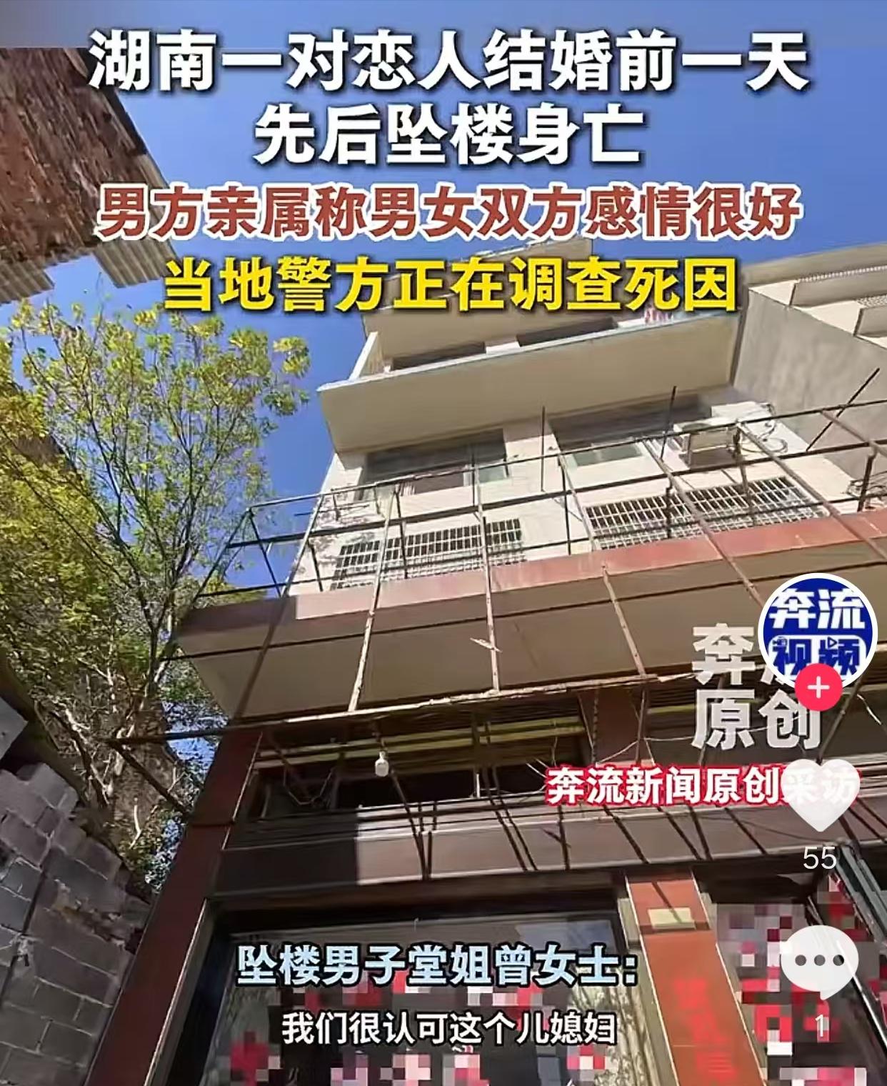 三、 殉情疑云:是意外连锁还是另有隐情?准新娘在早上7点40分被母亲叫醒下楼,看到男友遗体后当即上到4楼,一跃而下。