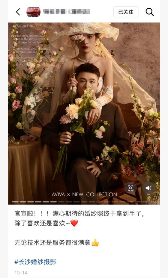“官宣啦!满心期待的婚纱照终于拿到手了,除了喜欢还是喜欢~”
