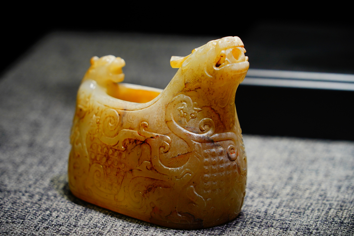 值得注意的是,现代检测证实其材质为和田深色青玉,这种产自昆仑山脉的玉料硬度达摩氏6.5度,摆件边缘在玻璃表面留下的划痕成为最直观的材质认证。拍卖行专家指出:"当代藏家已建立双重评判标准,既要看仿古工艺的还原度,更要检验玉料的正宗性。"