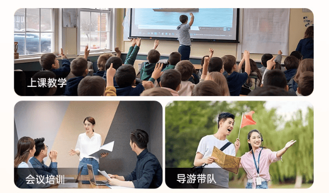 建议优先选择扩音清晰、抗啸叫能力强、续航稳定的机型。教学与讲座场景多为封闭空间,啸叫和回声容易影响听感。此类用户应关注是否具备智能防啸叫、语音增强或自动降噪功能,确保长时间使用依旧清晰自然。2、如果你是导游、户外讲解或活动主持人: