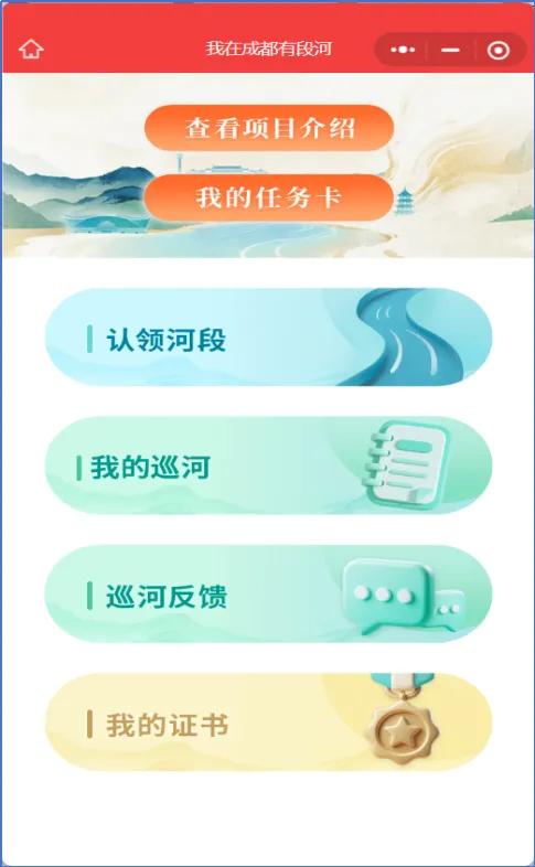 微信搜索【蓉群通】小程序,点击首页“我在成都有段河”专题大图,即可进入专题页面。