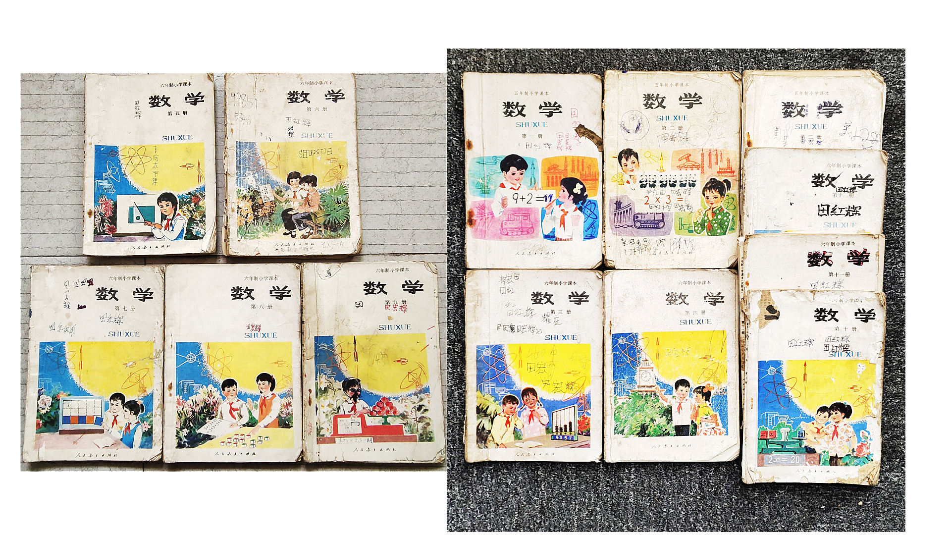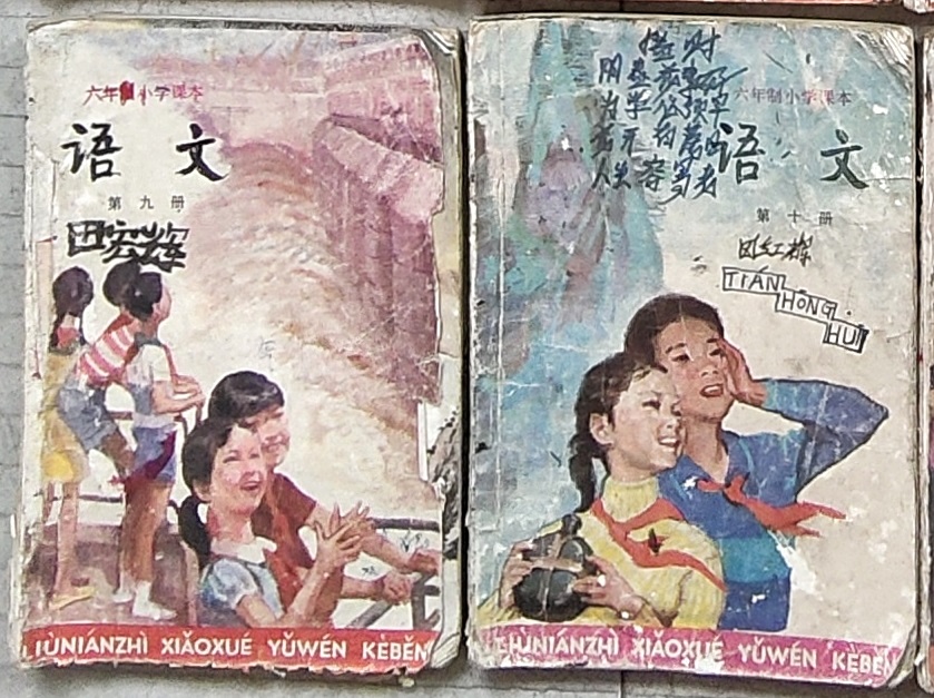 ▲我的小学语文课本及抄写在第十册封面的《惜时》诗