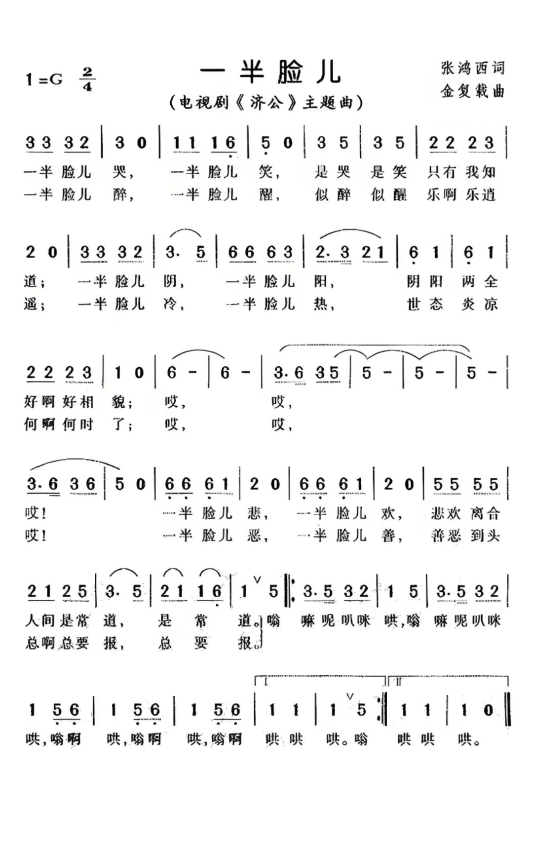 ▲电视剧《济公》续集主题歌《一半脸儿》