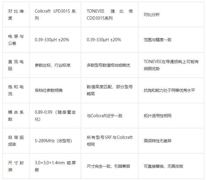 工程师在选型时应基于项目优先级决策:若需求侧重于完备的可靠性认证和长期供货保障,Coilcraft仍是稳妥之选;若项目更关注核心性能参数、成本效率、供应链响应速度以及国产化需求,TONEVEE CDD3015凭借其与行业基准对齐的技术规格和优秀的参数表现,已然成为一个值得信赖的优选方案。这充分展现了国产高端磁性元件在技术对标与市场应用上的成熟与自信。