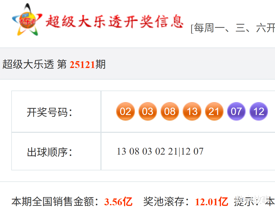 大乐透25121期一等奖:10注,追加: 1注二等奖:114注,追加: 23注。本期全国销售金额:3.568 亿 奖池滚存:12.011 亿.近15期奖池滚存, 中奖情况等信息: