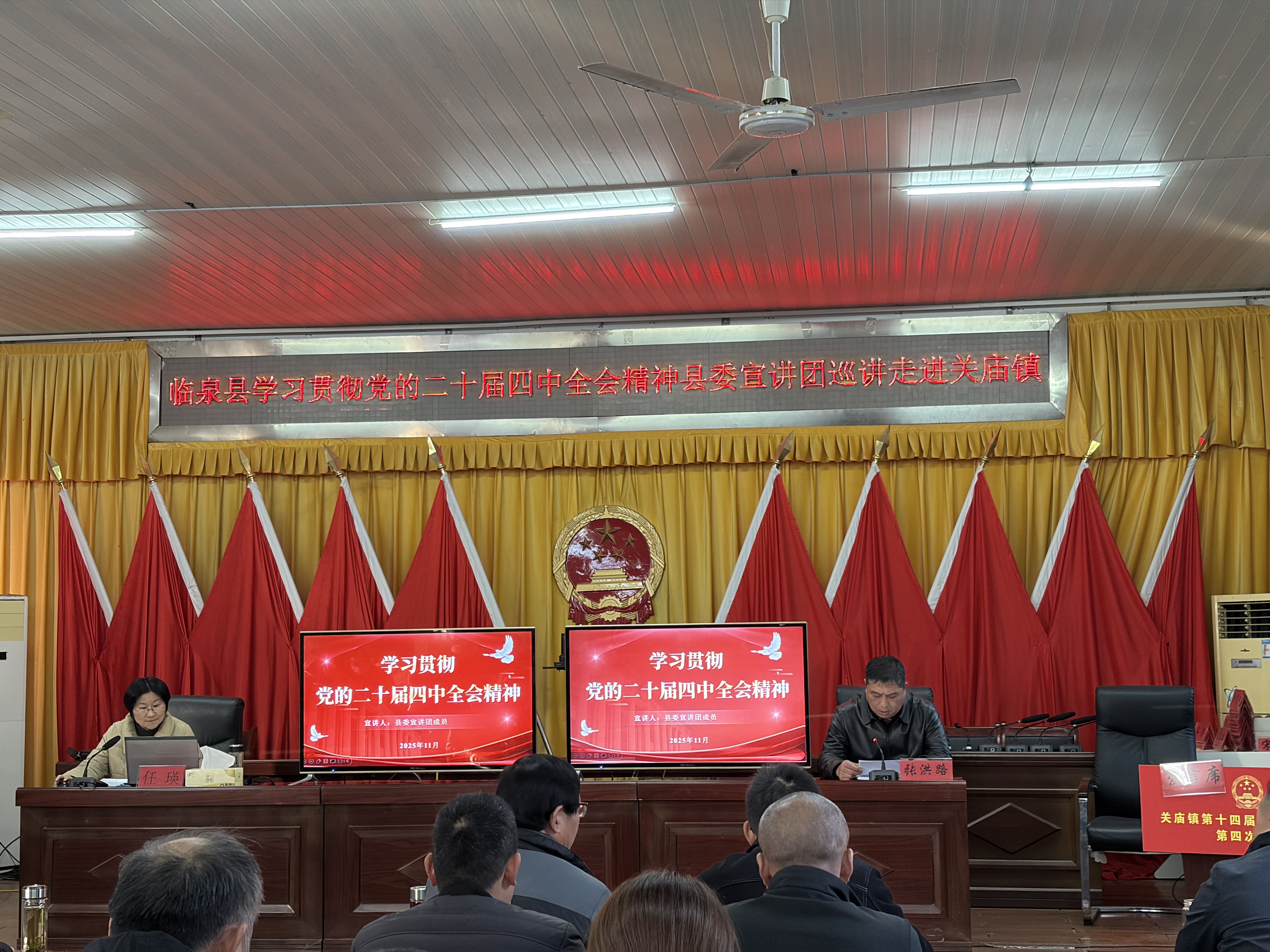 11月26日上午,临泉县委宣讲团成员县人大科教文卫工委主任任瑛到关庙镇开展党的二十届四中全会精神县委宣讲团巡讲,全体镇村干部、驻村工作队员、镇直部门负责人等近180人参加宣讲会。