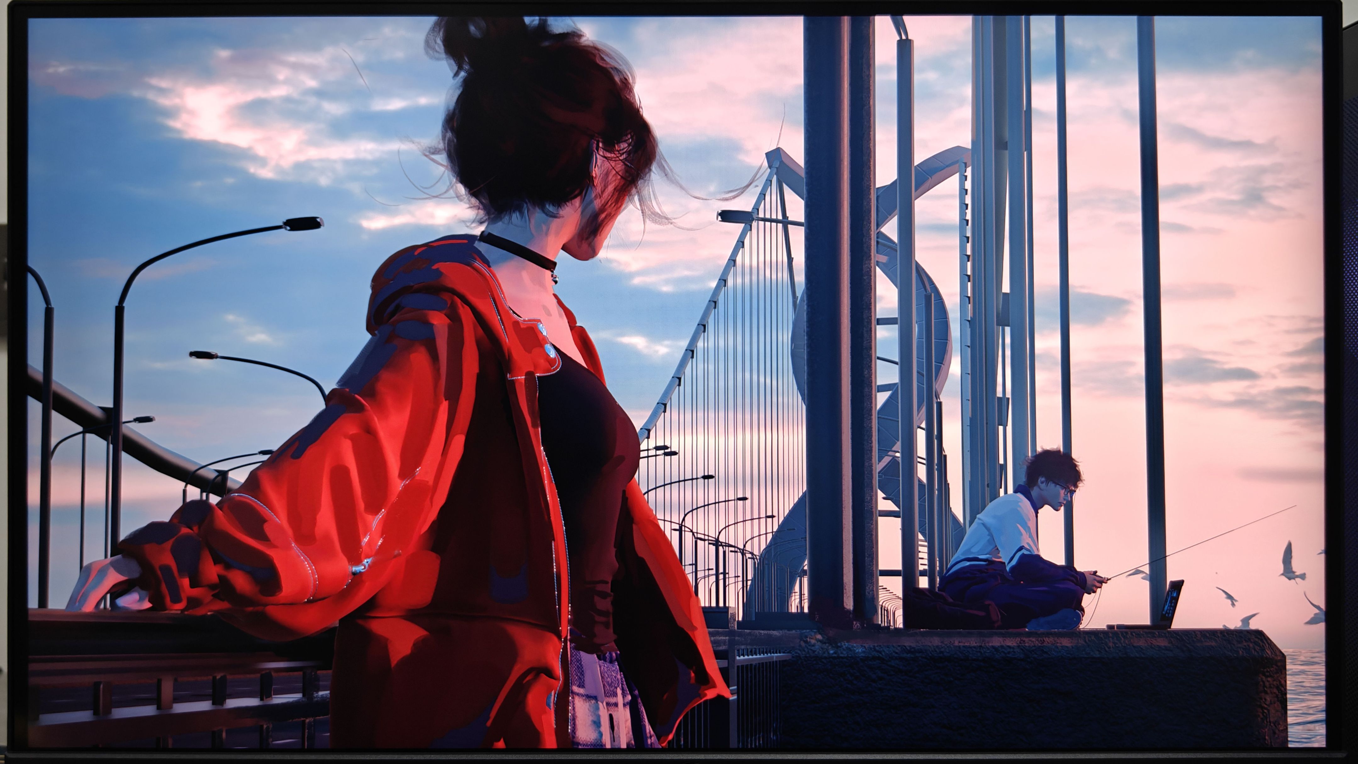 再来看看游戏的色彩表现,从赛博朋克的壁纸来看,灯光色彩的分界、人物刻画出来的轮廓,都可以清晰地还原。