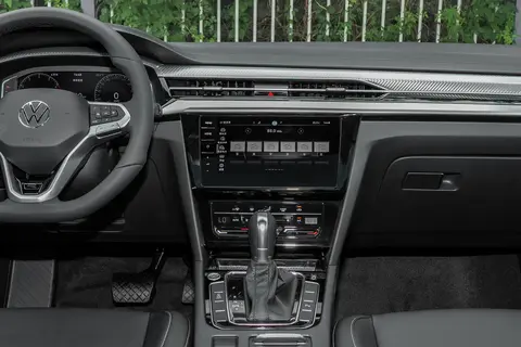 先看咱们先看入门版,330TSI炫目众享款,售价18.49万,车长4865mm,宽1870mm,高1459mm,轴距2841mm,定位5门5坐掀背车,使用了2.0T EA888直列四缸低功率发动机,匹配7档湿式双离合变速箱,最大马力186匹,峰值扭矩320Nm,最高车速210km/小时,百公里加速时间8.8秒,WLTC综合油耗6.76L/百公里,前置前驱,使用前麦弗逊+后多连杆式独立悬挂,配置方面,标配18英寸铝合金轮毂,电子驻车,车身稳定系统,疲劳驾驶提醒,6安全气囊,胎压报警,被动行人保护,倒车影像,定速巡航,自动驻车,上坡辅助,发动机启停,电动单天窗,带有R-Line运动外观套件,金属迎宾踏板,无框车门,皮质方向盘,机械档把,10.3英寸全液晶仪表+9.2英寸中控屏,支持4G车联网,苹果Carplay,百度Carlife,卫星导航系统,主驾语音识别,8扬声器,电动记忆尾门,支持无钥匙启动,使用仿皮的座椅,主副驾座椅支持电动调节,带有后排中央扶手,自动大灯标配日间行车灯,30色车内氛围灯,全车车窗一键升降,外后视镜加热、自动折叠,内后视镜自动防眩目,主副驾化妆镜带有照明灯,标配雨量感应式雨刷,自动恒温三区控制空调,带有后排独立空调,车载空气净化系统,PM2.5高效过滤系统。车外有1颗摄像头、8颗超声波雷达以及1颗毫米波雷达。可以选装1500元的无钥匙进入套装。2000元的19英寸铝合金轮毂+胎压显示。
