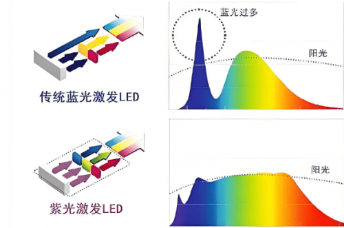 传统蓝光激发的护眼灯通常光谱不均匀,某些波段的光谱峰值较强而其他波段则较弱,这会使眼睛在长时间使用后感到不适和疲劳。而紫光激发光源的光谱更为连续,能够提供更平滑的光线分布,这不仅可以改善眼睛的舒适度,还能减少因频繁调节焦距而带来的视觉疲劳。