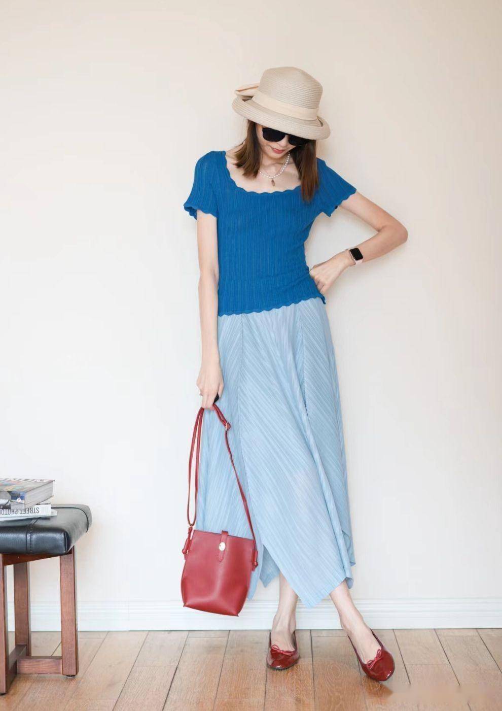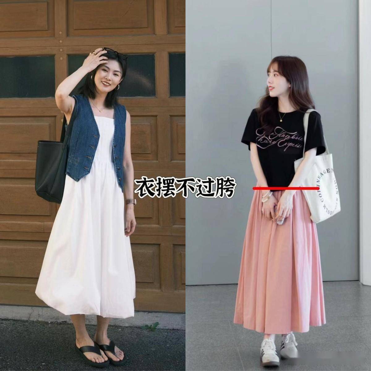 相信很多腿细,但是腿型不直、小腿粗的女生,都特别喜欢穿长裙,可长裙的挑选一定要避开拖地长度,对小个子很不友好,比拖地裙短一点的过膝裙,刚好遮住小腿位置,露出脚踝轻盈感十足。
