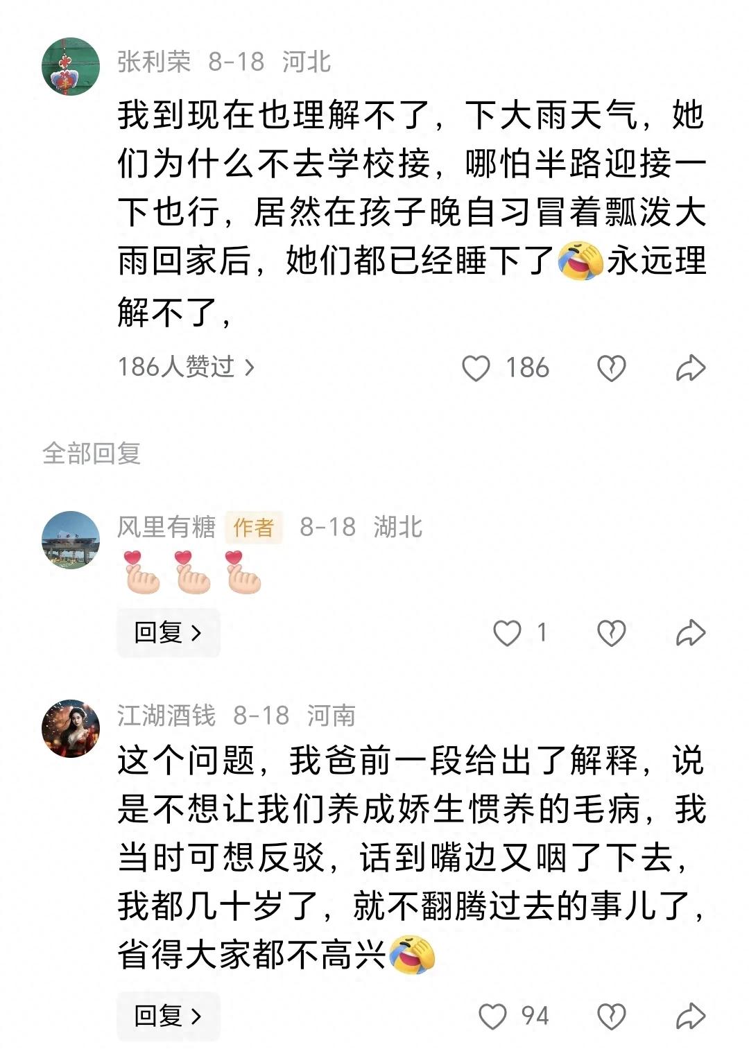 我来解释吧,可能因为你爸自己下雨的时候也是自己默认自己跑回来,没想过有人迎接,所以觉得所有人都应该这样,很多人是缺根经的,然后你问他的时候,他可能会解释是不想娇生惯养,其实是当下他压根没想应不应该接的事。