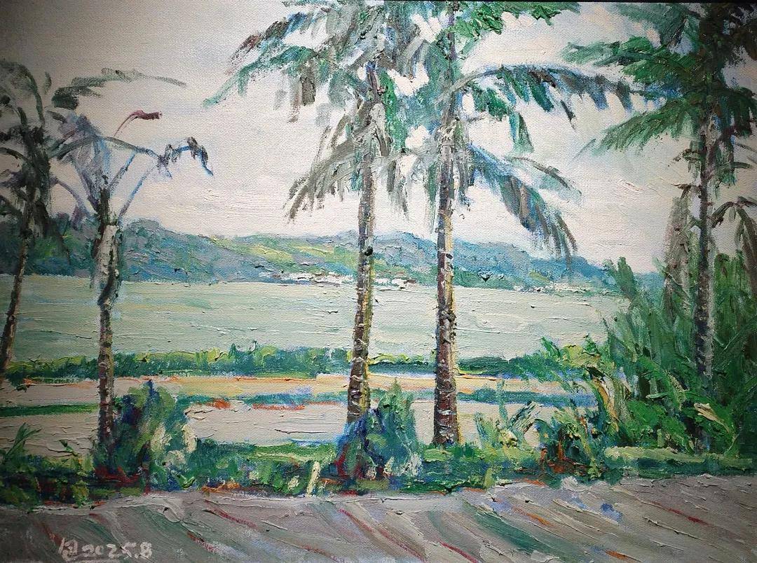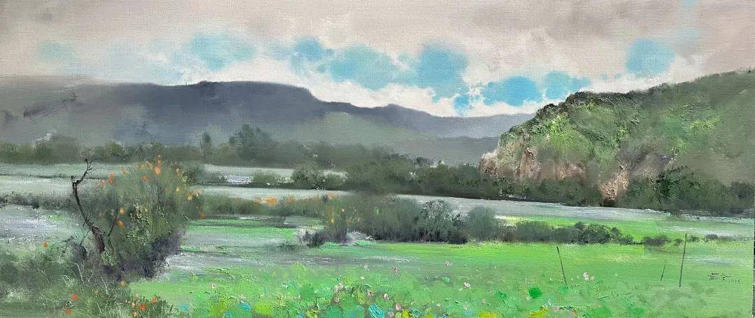 罗斌 《异龙湖畔小雨》80x45cm 油画 2025