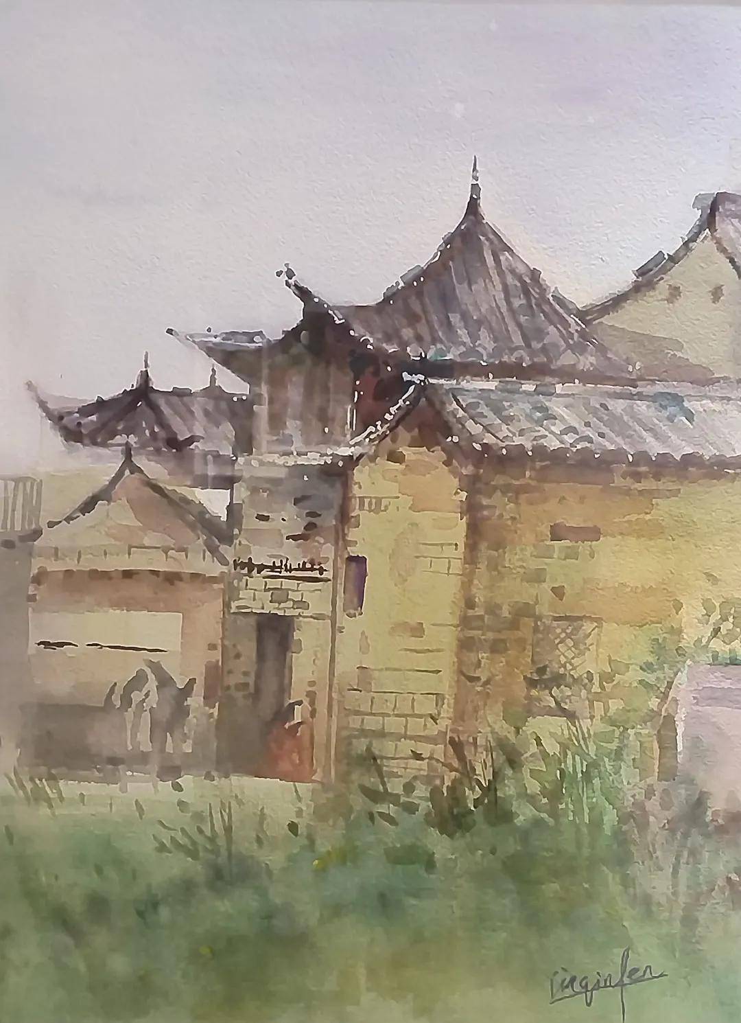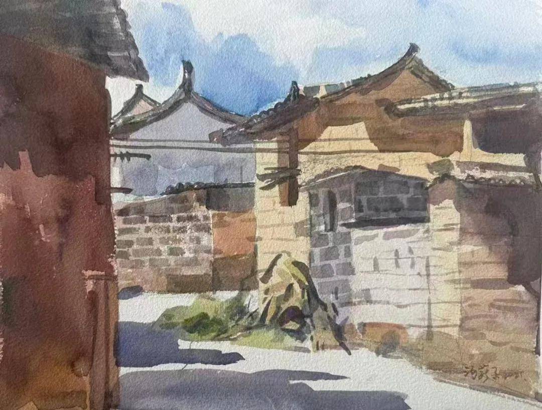 尹沁芬 《郑营民居》41x31cm 水彩 2025