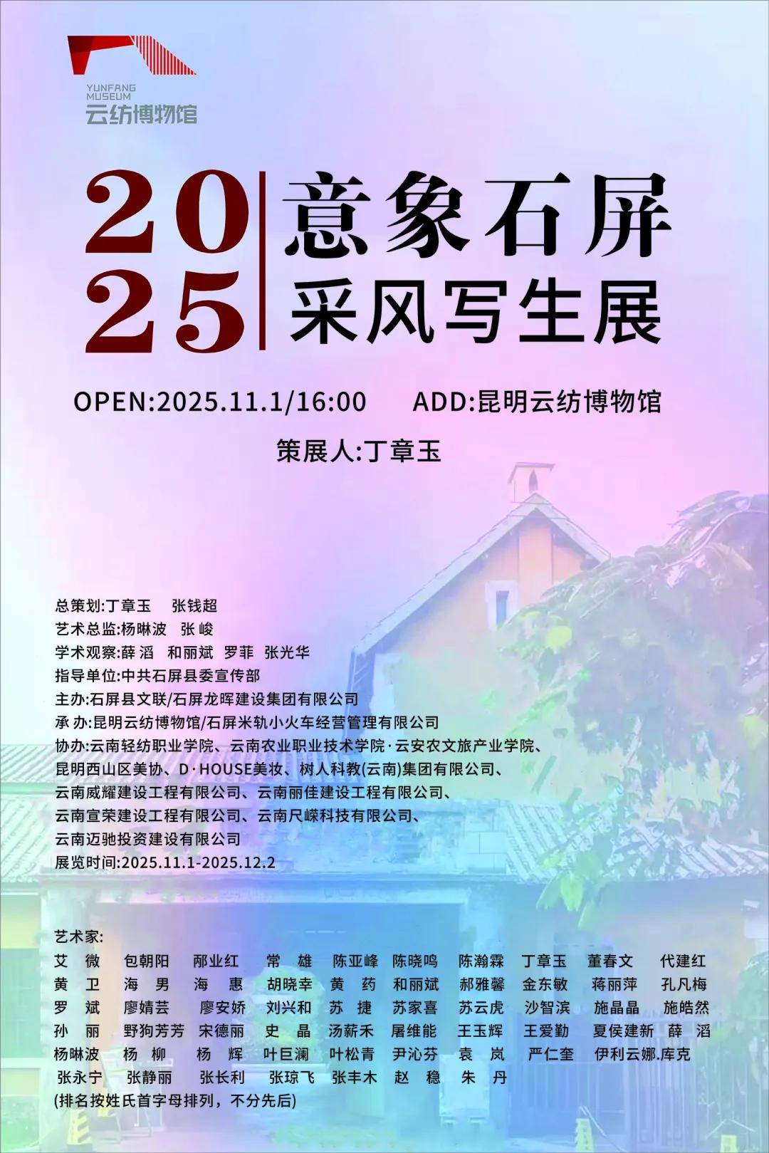 “意象石屏2025采风写生展”在云南以写生为晶核的现当代艺术创作机制、教育方法、组织经验中再出亮点。首先,石屏县这个拥有悠久历史和多元文化的地方,留给我们的一贯印象是温润的、包容的、好客的,这里有记录云南儒家文化传承和历史沧桑的文庙建筑群;有作为中国学子经世济民表率的袁嘉谷先生的故居,也是中国传统民居样式走马转角楼的典型;有云南第四大高原湖泊异龙湖,不仅是国家级湿地公园、国家首批陆生野生动物栖息地,更以“三岛九曲七十二湾”的韵致满足了文人墨客对山水之美的想象与憧憬;这里是中国首条民营铁路个碧石铁路的终点,不仅见证着云南民族工业的崛起,也将护国守边、国际交流的跌宕传奇镌刻在每一节寸轨之上;有征服了云南人民舌尖的石屏豆腐;这里还有绚烂多彩的花腰彝、哈尼族等22个少数民族的服饰文化和热情高昂的海菜腔、烟盒舞等少数民族艺术。在石屏县委宣传部和县文联的指导下,艺术家们走访古城、名胜和各个村落,对石屏的建筑、自然景色和民风民俗进行采集和创作,以绘画的方式,也以诗歌和影像的方式,成为艺术写生与民族学研究、乡村旅居建设的优秀结合,为当代艺术创作的在地性价值讨论提供了可资参考的范本。第二,作为活动赞助方的龙晖建设集团,长期致力于回馈社会、提升企业文化形象,他们对图像时代的信息传播和记忆方式有敏锐洞察,着力于艺术文旅的建设思路,将优秀的、资深的以及代表未来文艺发展方向的年轻艺术家们邀约到石屏,以丹青和辞藻之力渲染石屏的资源底色,增加对外来资源的吸引力。艺术家作品的多样性,特别年轻艺术家对材料、观念、技术方式的个性化表现,都在印证这是与石屏文化同质的包容与开放,创新和创意。第三,本届展览与往届一样,指导单位和主办单位给予艺术家群体最大的尊重,不干涉艺术家们的创作自由,艺术家们也在这种尊重中对石屏的丰富、细腻、生动的质感进行了全面而又别具一格的呈现。这种合作的默契也可为高校艺术教育和人才培养模式建立样板——因为参与的艺术家中有多数是教育工作者,促进产学研一体化改革。总之,祝贺本展成功,希望“意象石屏”活动能够越做越好。——张光华(批评家)