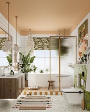 将卫浴空间变身为热带绿洲,通过大胆运用不同的材料、表面和图案,成功打造出与众不同的卫浴空间,以清新独特的方式脱颖而出。