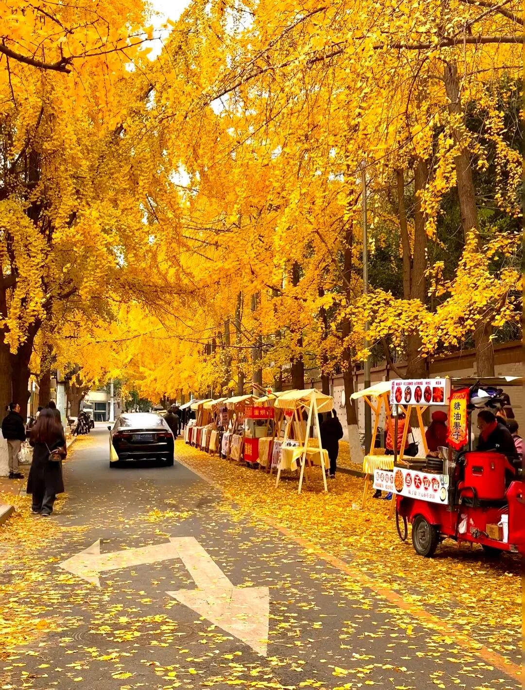 漫步银杏树下,就仿佛穿越到了童话世界。在这条路上,大家不仅可以慢赏、慢行、慢生活,路边还有小吃摊、手作摊,还能边吃边拍,十分有趣惬意。