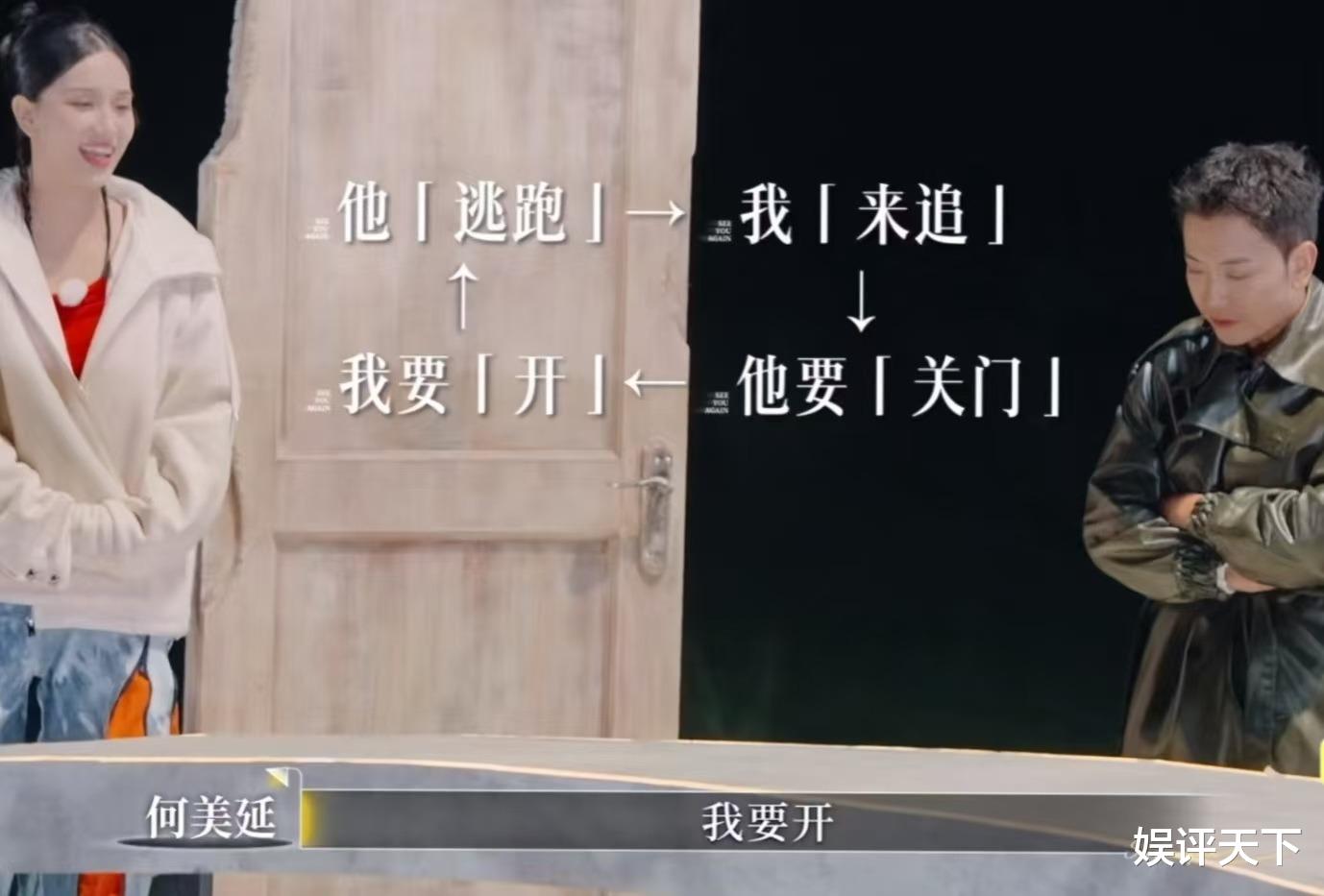 观察室的嘉宾刘擎分析的对,她就是过于依赖老公,对爱的要求太高太多,强需求会给对方造成压力。而且何美延总想驯服、控制梁淞,甚至有点享受这种“BATTLE”,这从她把老公逼的当街爆哭,事后讲起这个事情还洋洋得意就能看得出来。所以有一种可能是,何美延并不是真的爱梁淞,她只是想要在亲密关系中占主导地位。你越要逃我越要追,我要赢!我一定能把你抓到!