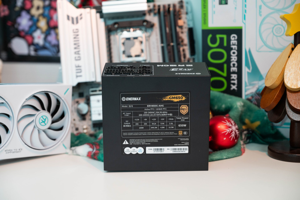 在翻阅大量评测和对比市面上同等级产品后,我最终选择了安耐美(Enermax)的金竞蝠GM650W金牌全模组电源。这块电源不仅拥有最新的 ATX 3.1 认证,更是有着“双金牌”加持,是我权衡下来性价比最高的选择。