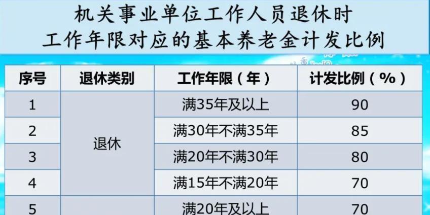 计算原则是,工作年限满20年不满30年的、满30年不满35年的、满35年的,分别按照在职工资的80%、85%、90%计发。