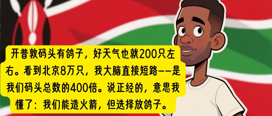 就像一位南非网友说的那样:开普敦码头有鸽子,好天气也就200只。看到北京8万只,我大脑直接短路——是我们码头总数的400倍。说正经的,意思我懂了:我们能造火箭,但选择放鸽子。