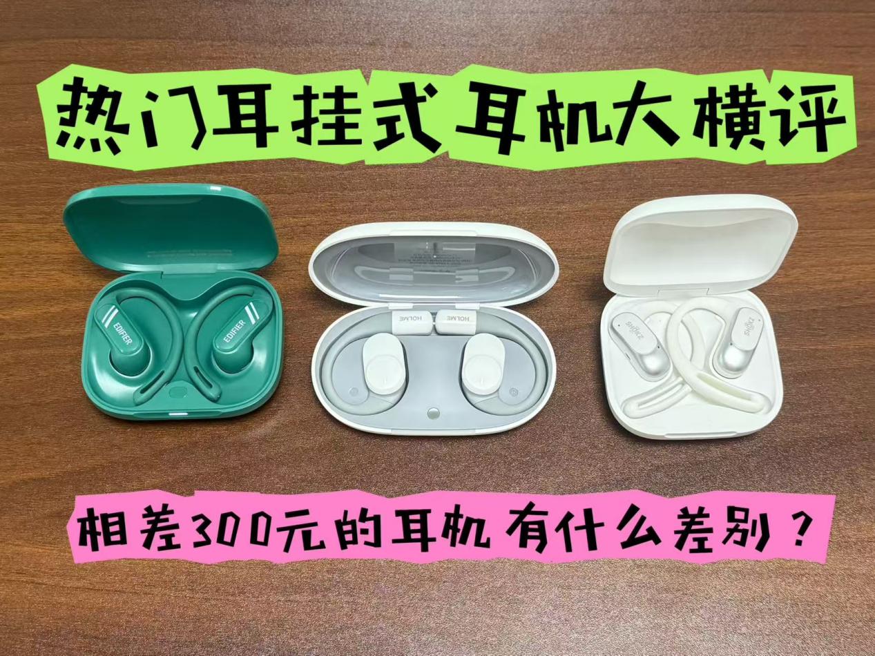 嗨!小伙伴们!相差三四百元的开放式耳机他们在外观和佩戴、音质上有什么差别,最近收到一些私信都在问一些市面热门款式,索性今天就来给大家把今天提到的热门款式一次讲完,来个热门款的横评,今天我们要测评的是269元的漫步者Comfo SE、399元的虹觅UItra、799元的韶音OpenFit Air,下面一起来看看吧!