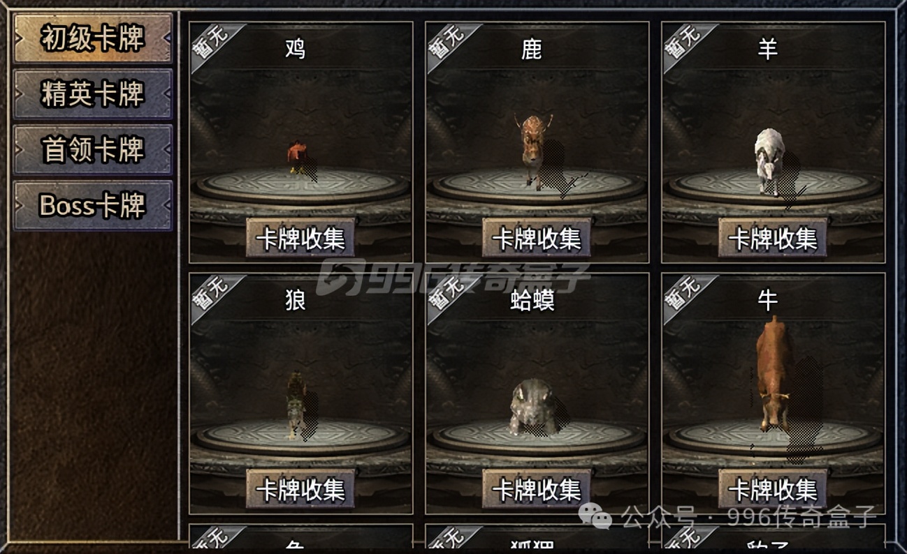 刷怪或者活动会给卡牌箱子,双击会随机开出卡牌,这个卡牌其实就是图鉴收集玩法。分为四个等级的卡牌,初级卡牌、精英卡牌、首领卡牌和BOSS卡牌。这些卡牌并不是开出来激活就好,而是可以升级的,收集一定数量的卡牌可以升级,升级后会加属性。品阶越高的卡牌,加成的属性越高,相同的,卡牌等级越高,加成的属性也越高!