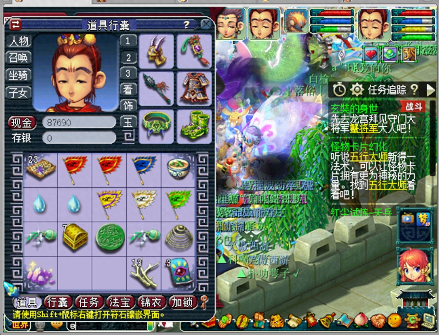 5.师门任务这个阶段一定要做,很多攻略让你不用做,但我很建议你做并且一定要五开一起做,在最简单的任务阶段训练你五个号同时做师门的能力。方便你109后去完成相对更分心的师门任务(示威和降服)。