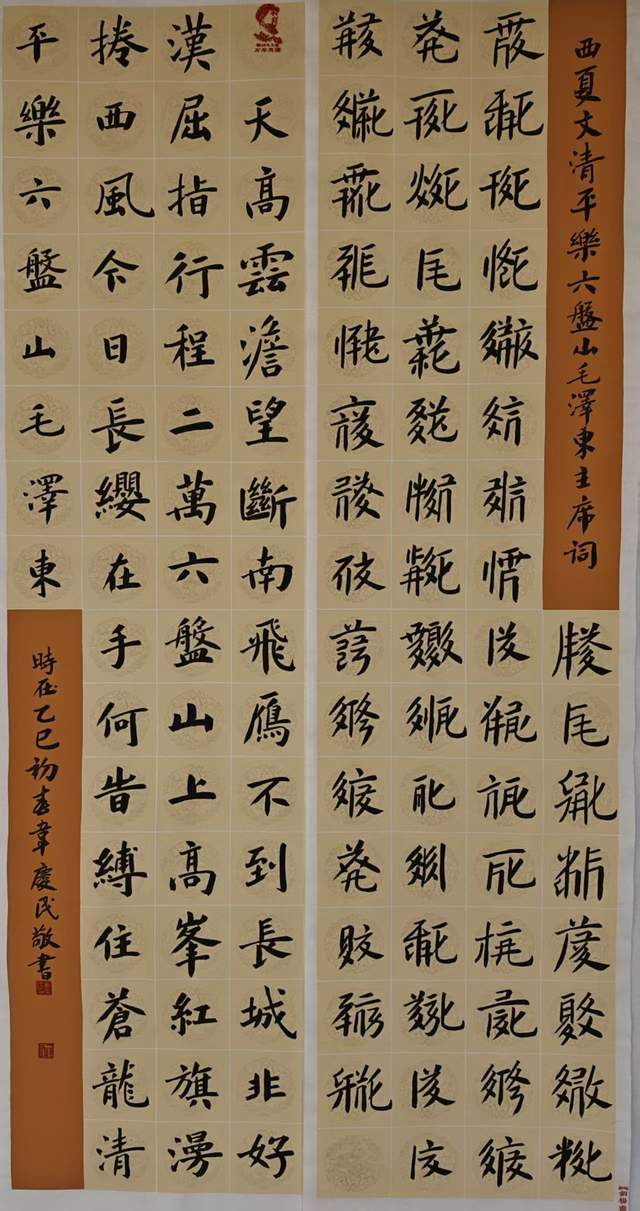 韦庆民,男,1959年8月出生于云南昆明,汉族。中共党员,大学文化。一级高级警长,三级警监警衔。自幼深受家庭文化的熏陶,爱好书法。从小学到高中,在学校用毛笔书写墙报,标语,书写乐谱、刻印蜡板等文艺宣传,奠定了坚实的书法基础。师从中国书法家协会会员彭洪顺先生。在书法上得到了系统,完整,严格的书法学习和训练。数十年来,书法作品先后多次在全国公安系统,全国司法系统,宁夏公安系统展出、获奖。
