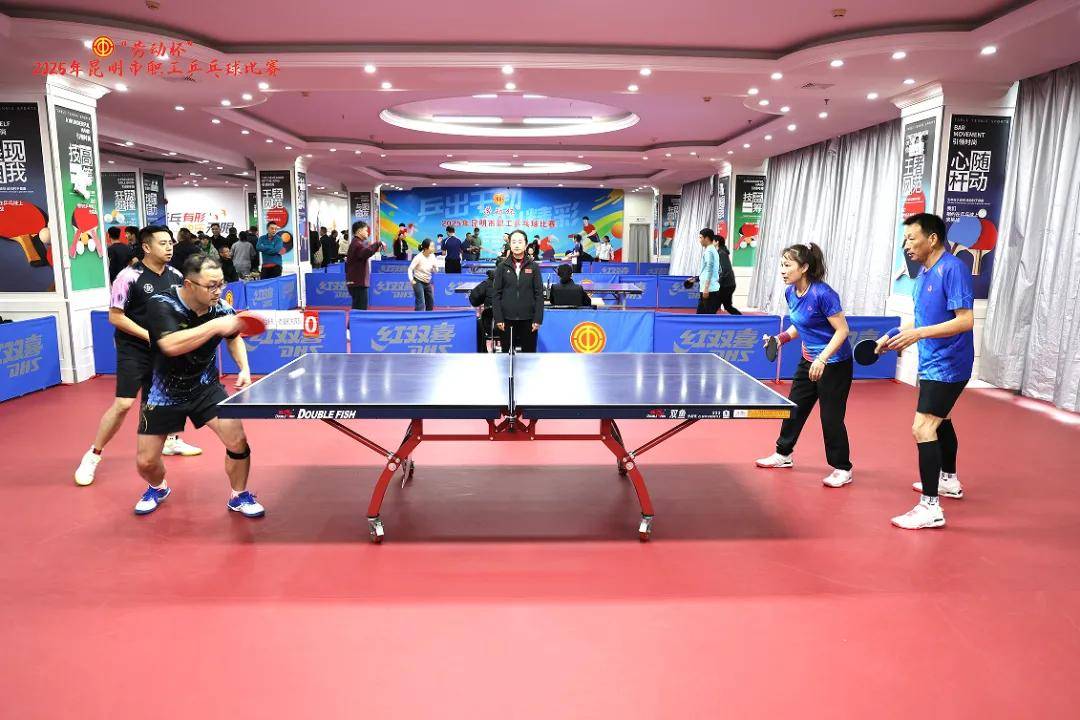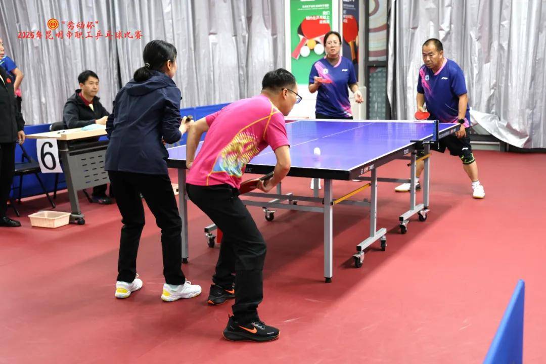 为进一步贯彻实施《“健康中国 2030”规划纲要》,贯彻落实全国总工会关于职工文化旅游“十项措施”的部署,增强职工凝聚力,积极开展重在基层、重在普及、贴近实际、贴近生活、贴近职工的文体活动,提升职工健康水平和身体素质,营造积极向上的职工文化氛围,11月18日,由昆明市总工会主办,昆明市工人文化宫承办的“劳动杯”2025年昆明市职工乒乓球比赛正式开赛。来自全市各基层工会的37支代表队的近240名职工,齐聚这场充满激情与挑战的运动盛会。