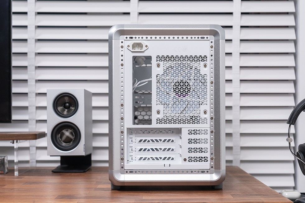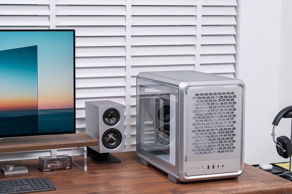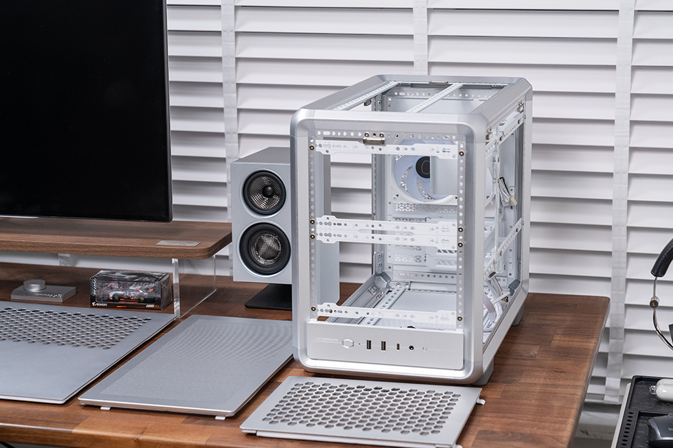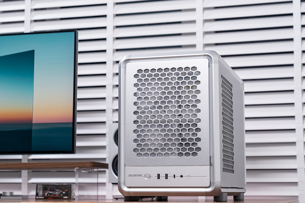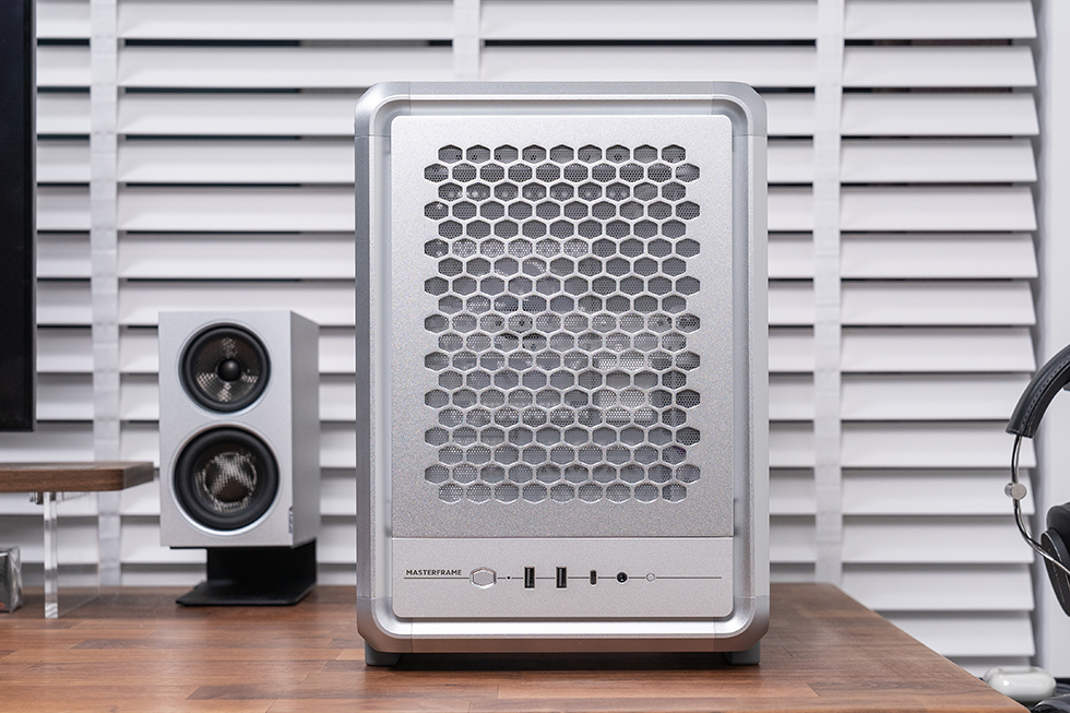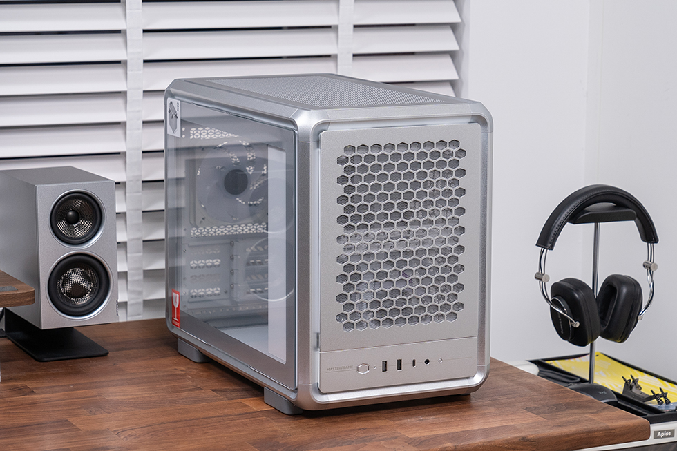 所有板材均采用磁吸快拆设计,无需工具即可拆卸,方便又实用。左侧板为侧透玻璃,前面板为标志性的六角形 Mesh 网孔板设计,下方有酷冷至尊标志外形的开机键以及USB 3.2 Gen2x2 Type-C、双USB 3.2 Gen1Type-A及3.5 mm音频组合接口。