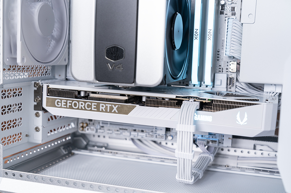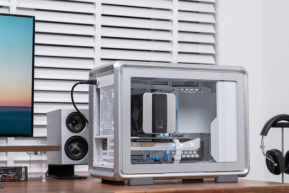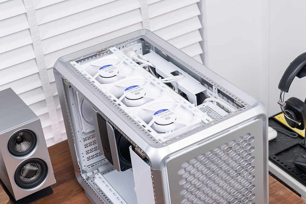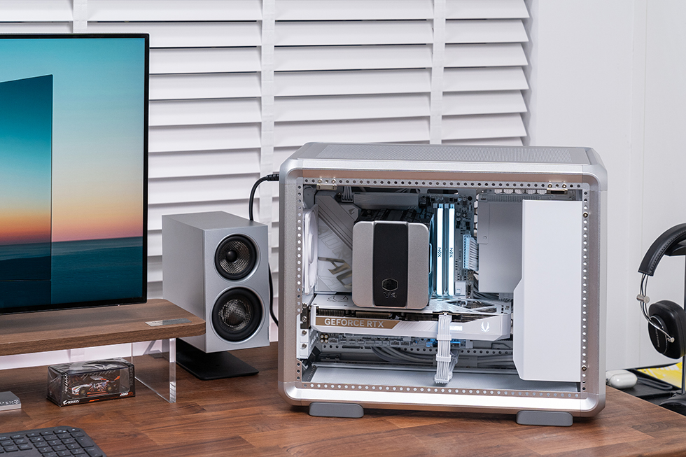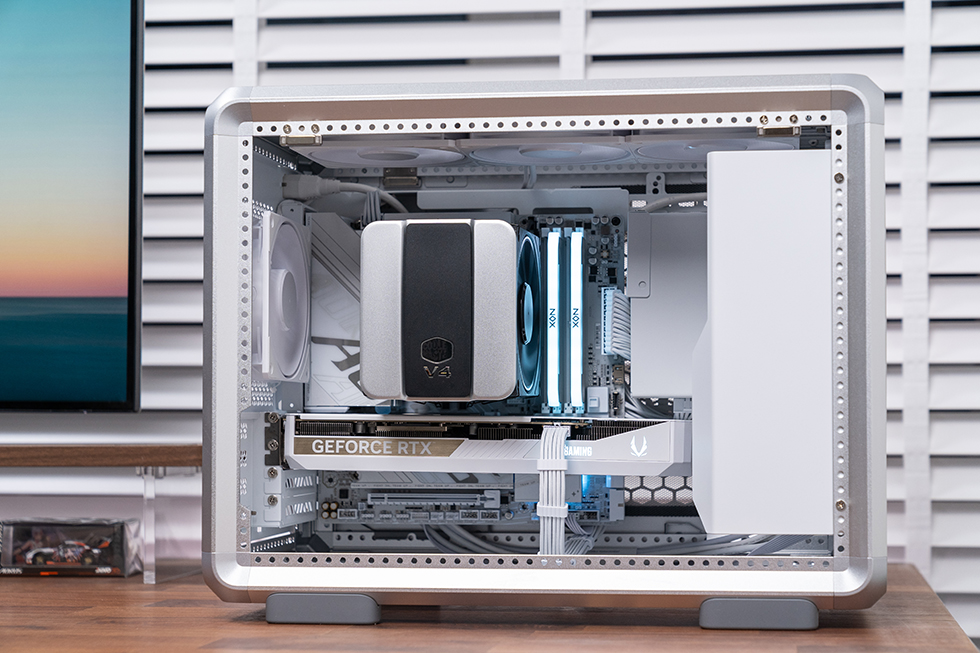 而当这款系列首款 MATX 旗舰机箱,遇上一套精心搭配的硬核配置,性能与颜值的碰撞便有了更精彩的呈现:AMD R7 9800X3D 凭借 3D V-Cache 技术释放强悍多核性能,索泰 RTX 5070 Ti 16GB SOLID CORE OC WHITE 以雪色外观与旗舰算力撑起视觉与游戏双核心,宇瞻 NOX RGB DDR5 6000 C28 内存与佰维 NV7200 2TB SSD 则构筑起高速数据通道;再加上酷冷至尊挑战者 V4 散热与莫比乌斯 120 白色风扇的加持,配合技嘉冰雕 B850M 主板的冷冽质感,整套主机在 MasterFrame 400 Mesh 的承载下,既拥有紧凑机身的精致,又具备旗舰级的性能输出,更以纯白主题贯穿始终,成为一台 “内外兼修” 的装机代表作。