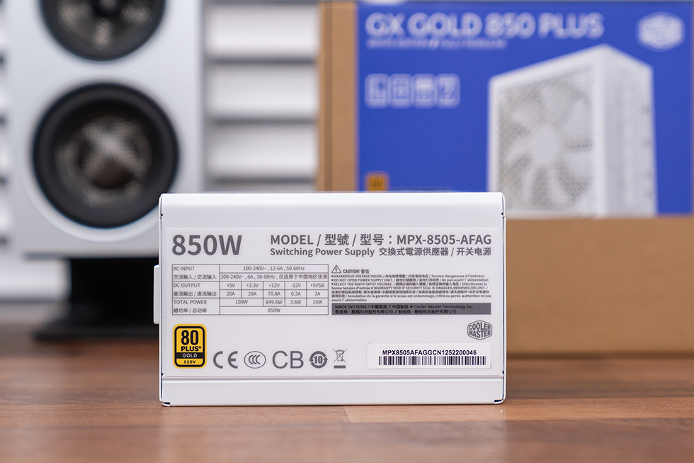 GX Gold Plus使用主动式PFC+谐振LLC+DC-DC方案,通过80 PLUS + Cybenetics双金牌认证,转换效率高,耐高温日系主电容,提供7年超长保固,省心耐用。额定功率 850W,采用单路 + 12V 输出设计,+12V 单路最大输出 849.6W,+5V 与 + 3.3V 输出电流均为额定 20A,联合输出功率为 100W,+5V 待机输出则为 3A,相当于 15W 功率。
