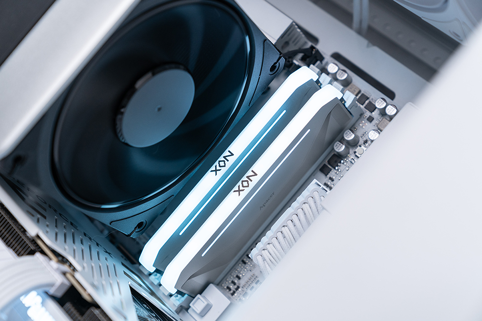 内存则选用了宇瞻全新的NOX RGB DDR5 内存,采用海力士原厂颗粒,单条容量16GB,支持Intel XMP3.0与AMD EXPO™单键超频技术,选择了AMD平台的黄金时序C28。开启XMP后,频率则为6000Mhz,时序 28-48-48-96 CR1,内部搭载PMIC(电源管理芯片),能有效管理电流,确保系统稳定高效运行。