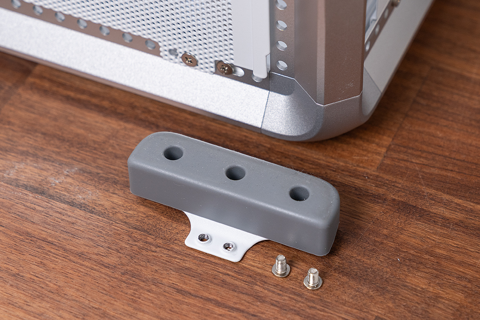 底部带有可拆卸的橡胶脚垫,通过变换脚垫位置,可以实现机箱立式或者卧式的两种放置形式。