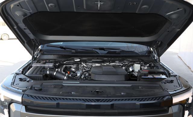 机盖上彭起的筋线,就像肌肉男的肌肉线条一样,充满了力量感,中间的“闪甲护盾”造型独特,威严霸气又极具视觉冲击力,而且还有保护作用呢。前保险杠也是宽大有力,它可不僅仅是为了好看,它能吸收缓和外界的冲击力。两侧集成了雾灯与转向灯,底部的黑色护板就像一个忠诚的卫士,默默地保护着车辆底部。