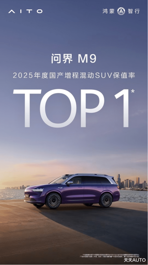 销量衡量广度,而保值率与用户口碑则丈量深度。在中国汽车流通协会发布的《2025年11月中国汽车保值率研究报告》中,问界M9已连续四个月蝉联中国插电混动(含增程)车型保值率第一,并成为2025年度国产增程混动SUV保值率第一。口碑方面,在杰兰路2024下半年-2025上半年新能源汽车品牌健康度研究中,问界M9连续两期获得新能源全车型用户净推荐值第一。问界M9在销量、口碑、保值率这三个关键维度同时建立的领先,共同表明高端汽车市场的竞争核心已从传统品牌光环转向以科技为支撑的综合体验。