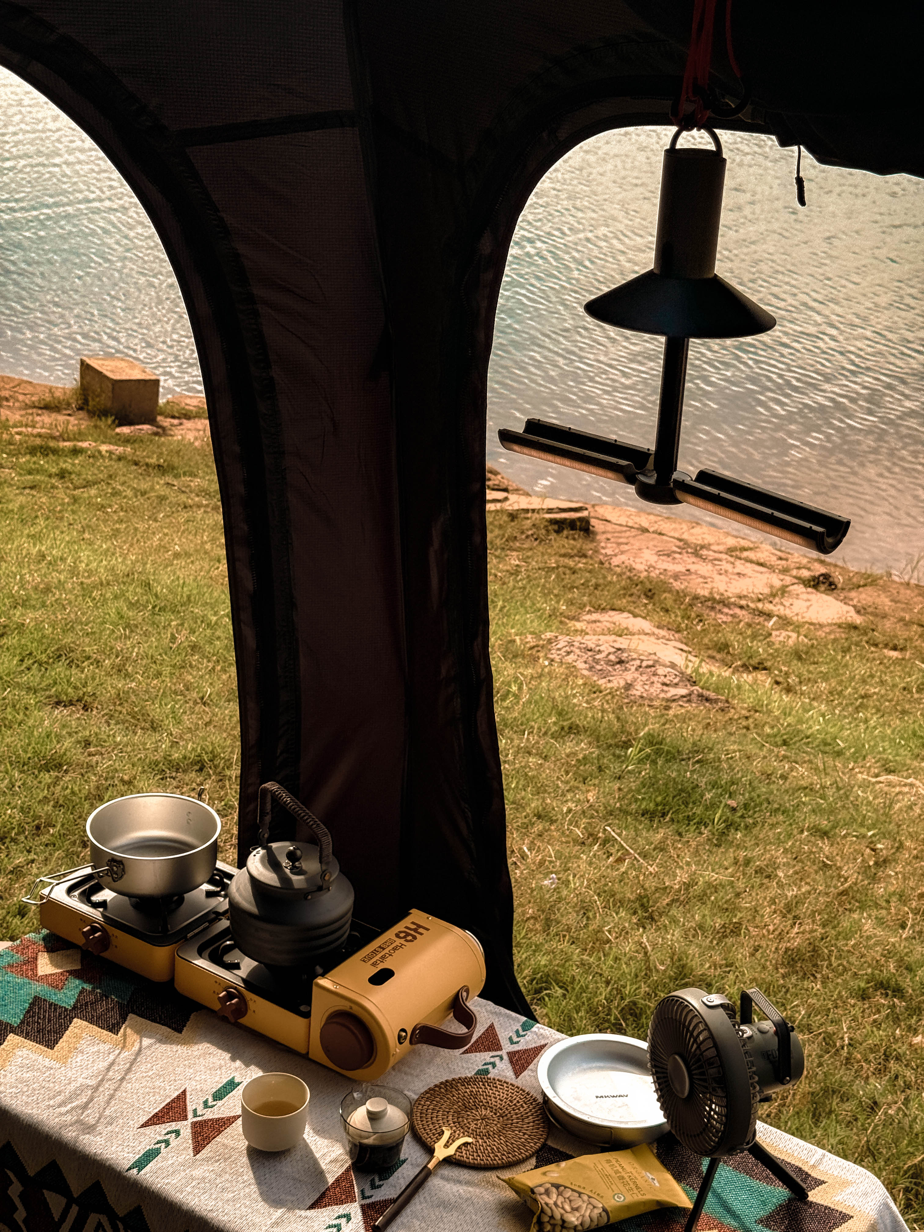 灯:纳拓悟空露营灯,最近使用频率最高的一款灯,因为百变的造型,几乎覆盖到了露营的全部场景,不仅能当露营氛围主灯还能当手电筒,什么主灯、手电灯、台灯、扫地灯,一灯搞定