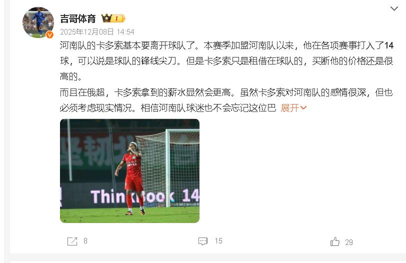 当河南队官宣阿奇姆彭、卡多索等10名球员离队时,球迷的怒火直接烧穿了评论区,为什么这样说?上个赛季轰入15球、足协杯决赛关键先生的加纳“小钢炮”走了,30场14球6助攻的卡多索也没买断,连尹鸿博、牛梓屹这些本土主力都跑了!这波操作,是河南队“自断双臂”,还是中超生存法则的残酷写照?