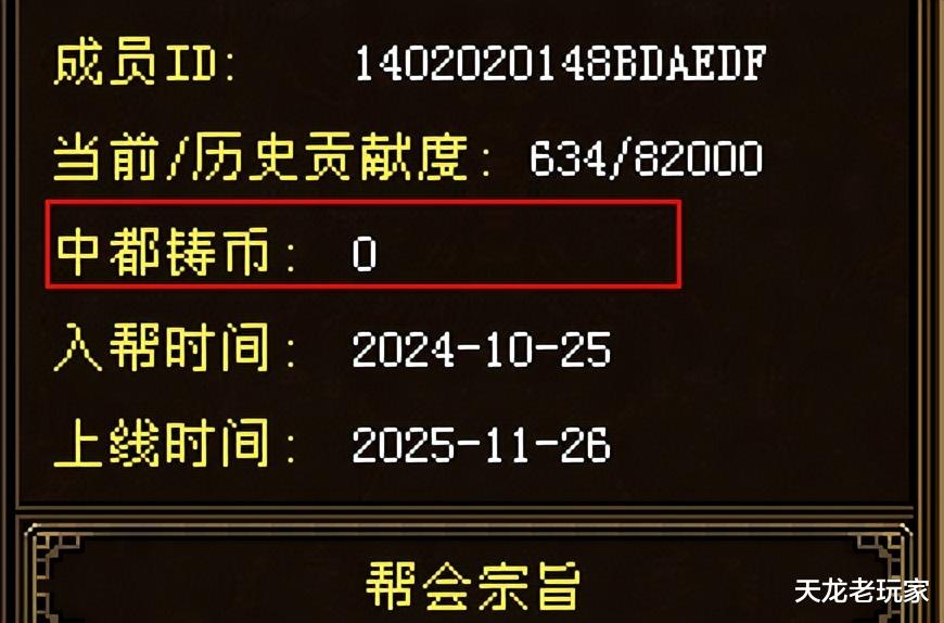 打开帮会信息,点上自己之后,能看到自己有没有中都铸币: